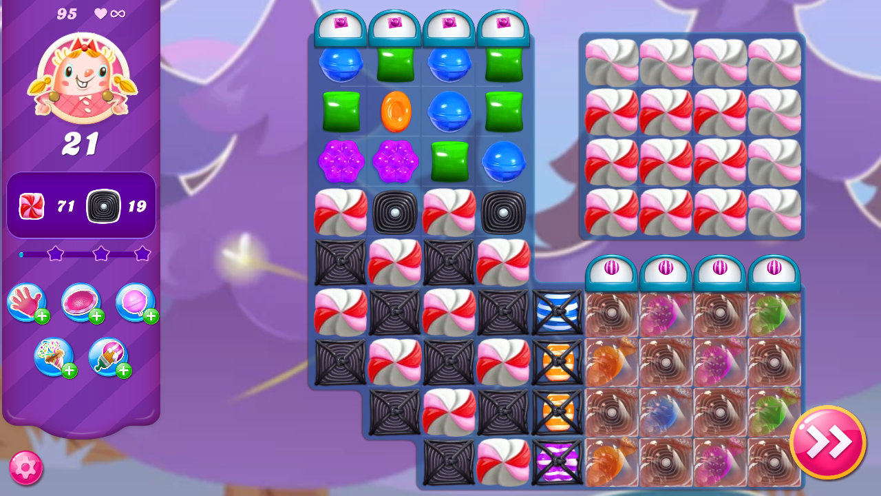 Also doesn't help that those levels are brutal (i'm convinced that you're supposed to have unlocked a booster that deals more damage to stuff . This the first level of salty canyon episode that have one new material which is bomb that can blast after selected moves. If you want you can make a dummy . Go to your map and open any desired level. Level 96 guide and cheats: Candy crush saga as of now holds 8106 levels in 540 scenes on the html5. Levels 14.how to play the jelly level 15.how to play the ingredients level 16.how to play the timed level 17.things to unlock in candy crush saga 18. Get 15000 points in 15 moves. The default stance on king's candy crush saga mobile game in the. On some levels in the candy crush saga, how you start a level can determine if you will beat. Level 96 is dubious in light of the bombs that continue falling onto your board. Most people will win this . Hello user, if you want to pass on that level you need the help of your friends by sending you tickets and extra life.